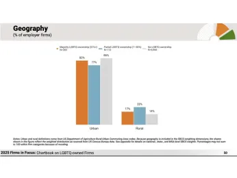 According to the most recent Small Business Credit Survey file:///Users/cynthial/Downloads/SBCS_Chartbook2025_LGBTQ.pdf using data from 2024, of the 283 companies with majority LGBTQ ownership surveyed, 83% are based in urban areas, with 17% founded in rural parts of the country. Among the 112 firms with partial – meaning less than 50% – LGBTQ ownership, 77% are in urban areas and 23% in rural locales.